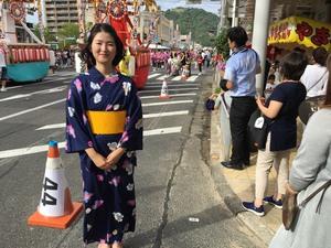 ↑特別番組の中では、浴衣で中継を担当。![]()