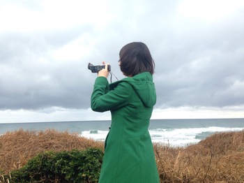 2017年12月。冬の日本海を撮る母。