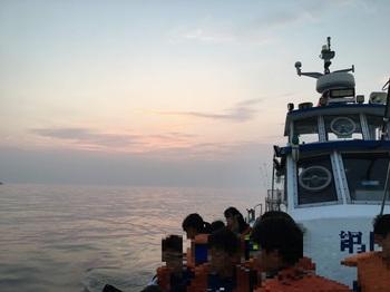 一環で、子ども達とイカ釣り漁船に乗船!