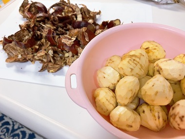 60個の栗をむきました。指に水ぶくれができました。