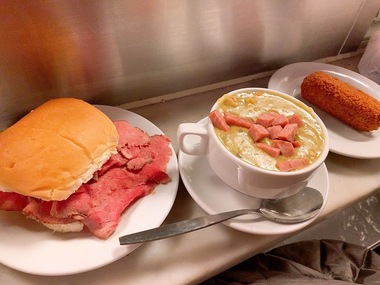 ・名物クロケット(コロッケ)塩辛いシチューが入った感じ。