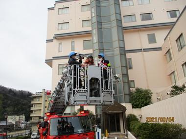 高い位置の消火活動で活躍するはしご車にも特別に乗らせてもらいました。