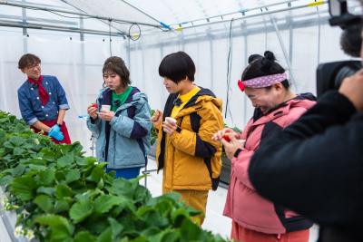 そして、これから旬をむかえるイチゴの収穫体験へ。