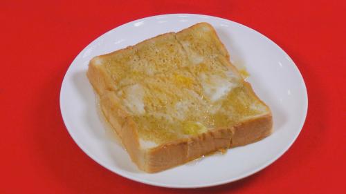 1)「食パン」に切れ目を入れる 2)「たまご」に「ミルクティー」を混ぜ 「食パン」に染み込ませる 3)レンジで温めて「はちみつ」をかける