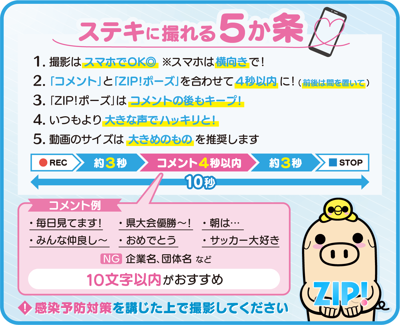 採用された動画は、「ZIP!」(月~金あさ5:50-9:00)の中で随時放送いたします!